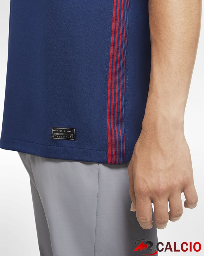 Ispirato alla maglia indossata dall'Atletico in trasferta durante la stagione delle doppie vittorie 95/96, la maglia da trasferta dell'Atletico Madrid 21/22 presenta una base blu scuro con una striscia diagonale rosso cremisi. L'angolo della striscia è esattamente uguale a quello che si trova nel famoso stemma del club, che rappresenta l'incessante ricerca del progresso.