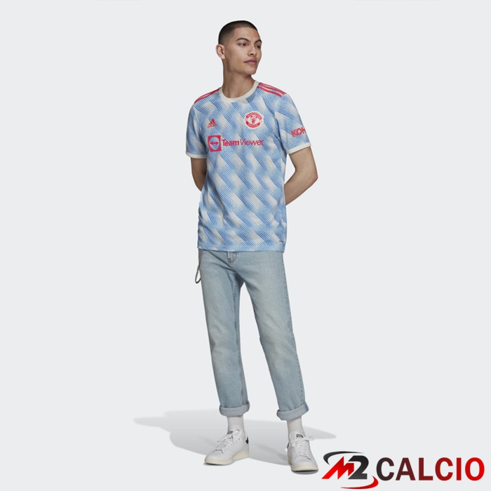 La maglia da trasferta Adidas Man United 21-22 è principalmente Cloud White, lo stesso colore utilizzato per la maglia da trasferta dell'Arsenal 20-21. Ispirata alla maglia 91-93, presenta una stampa grafica geometrica blu sul davanti, sul retro e sulle maniche.